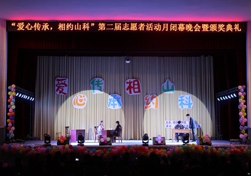 413日,由校区、学院团委主办,大学生志愿者联合会承办的“爱心传承,相约山科”第二届志愿者活动月闭幕式晚会在东校园礼堂成功举办。校区、学院团委社会实践部部长王衍国,泰安韩十二摄影社负责人高歌等应邀观看了晚会。