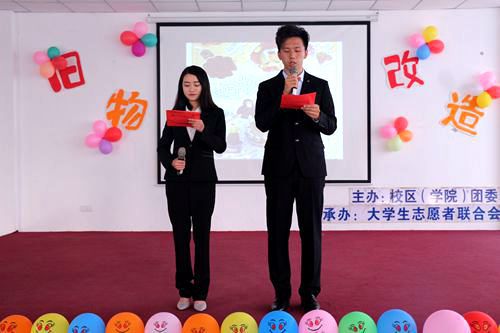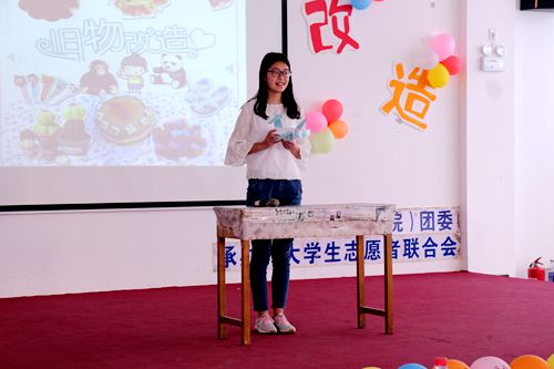 日,由校区、学院团委主办,校区、学院学生会大学生志愿者联合会绿洲节能服务部承办的旧物改造大赛决赛在东校园大学生活动中心成功举办。