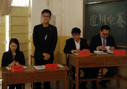 本次辩论赛以“强拆旧建筑发展盈利旅游业是否正确”为辩题分为一辩陈词、双方攻辩、自由辩论、总结陈词、观众提问五个环节。辩论赛正方(东校代表队)的立场为强拆旧建筑发展盈利旅游业是对的,反方(西校代表队)的立场为强拆旧建筑发展盈利旅游业是错的。比赛开始前两队辩手聚在一起对自己的辩论策略和辩论稿件进行最后的确认。下午四时,比赛正式开始。双方一辩用具有高度概括性的论述为本次辩论开篇陈词,使比赛顺利进入主题。紧接着双方二辩补充陈词,并向对方辩友发问。双方辩手思维敏捷,针锋相对,缜密的逻辑推理与巧妙迅速的应答能力赢得现场观众热烈的掌声。自由辩论环节中,双方辩友思路清晰,字字珠玑,毫不相让,不留给对方一丝喘息的时间,同时在辩论中不失风度,侃侃而谈。紧张激烈的比赛体现了辩手们的灵敏反应能力,也考验了他们的表达能力,使其逐渐进入白热化阶段。总结陈词环节中,双方辩友旁征博引,各自针对对手逻辑上的漏洞逐一回击,为赢得比赛做出最大的努力。现场观众激情澎湃,在观众提问环节中积极发问辩手们冷静沉着,巧用各种例子,一步步化险为夷。评委在最后对双方辩手作出了点评,肯定了辩手们的应对能力与逻辑思维,同时也指出了希望改进的一些不足之处。