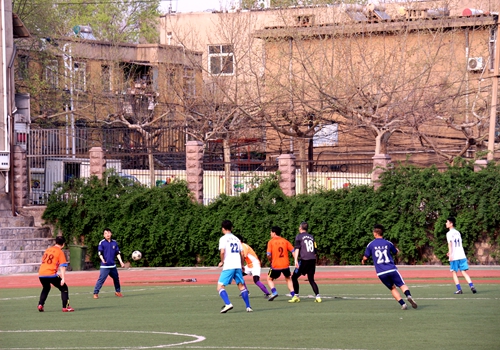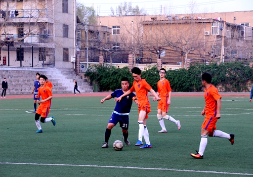 本次比赛的两支参赛队伍由东西两个校园的老师和学生组成。下午四点二十分比赛正式开始,本着师生合作、强身健体的目的,进行了一次技术性与趣味性并存的比赛。比赛过程中两队互不相让,师生双方积极进攻、防守,你来我往。炙热的阳光和极速的追逐让赛场上的师生们大汗淋漓,但是没有一个人停下奔跑的脚步。可以看出比赛中许多老师对足球有着特殊的热爱,他们为每一球的入网爽朗高呼,也为错失射门例会而唏嘘不已。师生的欢乐互动为本场比赛增添了许多的活力。上半场东校园师生代表队凭借默契的配合率先攻入两球。下半场开始后,西校园师生代表队开始强攻,攻进一球,但东校园师生代表队也不甘示弱,又连进三球,最终比分定格在5:1,东校园师生代表队获胜,比赛圆满落下帷幕。