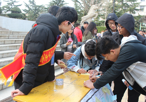 “3·15国际消费者权益日”始于1983年,旨在保护国际上的消费者的权益,促进各国和地区消费者组织之间的合作与交往。今年我国消费者权益日以“品质消费美好生活”为主题,加大消费维权的力度。此次我校3·15维权活动以在横幅签名、阶梯答题领奖、留言板写下在校涉权问题三种形式展开。同学们参加活动的热情很高,活动未开始前便井然有序的在各项目前站好队。在红幅下庄重的签下自己的名字后,便根据自己对于消费者权益掌握的情况站在不同难度的题目面前等待答题。答完题之后,在工作人员的引导下写出自己在学校遇到的涉权行为。充分体现了“科学消费从小做起,依法维权从我做起”的主题,帮助学生们树立品质、绿色、协调的消费理念。
