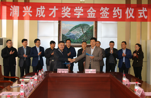 10月20日,校区、学院“润兴成才奖学金”签约仪式在西校园201会议室举行。校区、学院党委副书记苏同营,山东润兴机械设备有限公司董事长兼总经理高会廷出席签约仪式,并代表校企双方签署合作协议。签约仪式由学生处处长黄德杰主持。