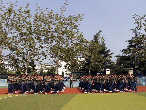 在近一周的军训中,他们逐步学习了站军姿、停止间转法、齐步走和正步走等几个动作,严格遵守教官的要求,对每一个动作都反复练习,争取做到整齐划一。在训练基本动作的同时,他们还简单学习了军体拳和匕首操,英姿飒爽的女子军队,用她们的力量挥动着拳头,展示出巾帼英雄的风范。