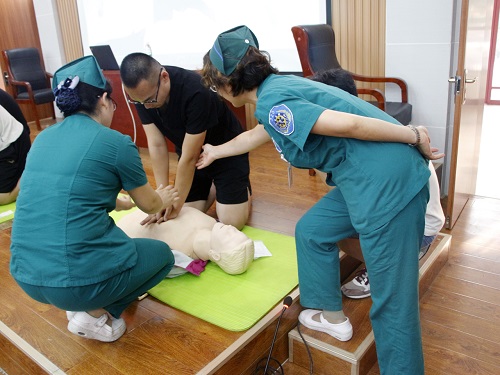 活动伊始,王靖强调了掌握基本应急救护知识的重要性和必要性,并就应急救护知识给大家进行了理论培训,重点讲解了心肺复苏的基本原理和操作流程。随后,王靖及其他医护人员就心肺复苏操作流程进行了现场示范,并让同学们进行了实训,医护人员手把手的给上台实训的同学们进行了指导。最后的互动环节中,同学们踊跃参与,提出相关问题,王靖现场给予了解答。