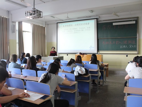 5月17日、19日,由校区、学院学生工作处、团委主办,校区、学院心理健康服务部承办的考研压力心理调适专题讲座分别在东、西校园成功举办。讲座由大学生心理健康教育中心宋大力老师主讲。