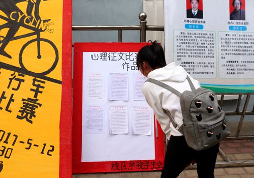 5月11日,由校区、学院学生工作处、团委主办,学生会大学生志愿者联合会心理健康服务部承办的心理征文比赛成功落下帷幕,并分别在东、西校园进行了评选展览。