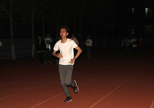 晚上九点十分,操场上聚集了一大批前来夜跑的大学生。为了激发大学生跑步兴趣,此次夜跑采取积分制,每跑一圈打孔积分,以两周为一个周期进行排名奖励。大学生们有结队进行的,有采取比赛方式进行的,形式多样。他们奔驰在操场,疾速的步伐,敏捷的身姿,飞驰而去的背影,构成了夜空下最美的风景,尽显出当代大学生的活力与风采。