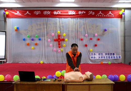 4月7日、8日,校区、学院团委主办的“人人学救护,救护为人人”急救员培训活动分别在东西校园举办。