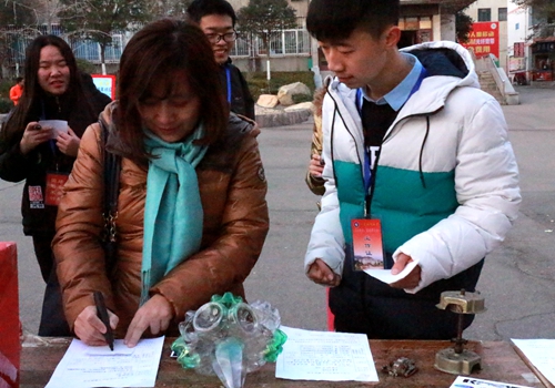 此次大赛进入最后环节的共有十三份作品,包含有发明制作类、创意类、制作类。天气虽然寒冷,但挡不住工作人员和同学们的热情,工作人员认真的给参与投票的同学讲解各个作品,不时有路过的同学参与进来,每位同学最多可以投两票。经过投票,天真队的《巧手改造废纸箱》获得本次比赛的一等奖。(文:周慧芳 于德鹏 图:梁非凡 刘鑫)