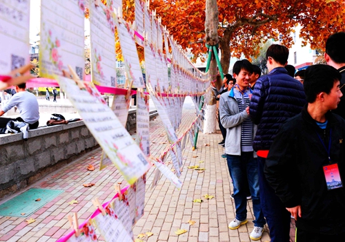 11月17日,由校区、学院团委主办,校区、学院学生会大学生新闻中心承办的“写在今天,留给未来”时光慢递活动在东校园小篮球场东侧林荫道举行,广大同学积极参与。