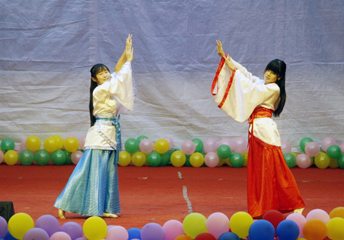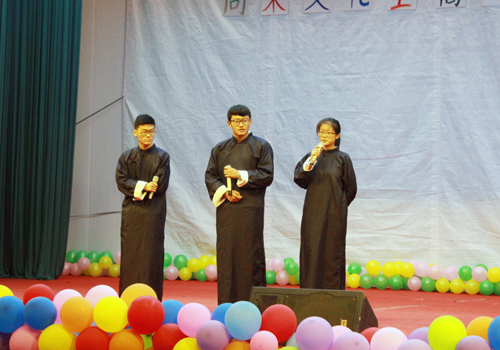 激情飞扬,舞动青春。一场热情俏皮的舞蹈《lie》拉开了整场典礼的序幕。吉他弹唱、诙谐的相声小品、贴切生活的话剧、深情的诗朗诵、唯美的音乐剧无一不展现当代大学生的风采。舞蹈《相思垢》传递着阵阵中国古风,优美的旋律,典雅的舞蹈给广大学生带来无限美的享受,让观众重温古朴之美。由青年法学会带来的《如果没有宪法》,以话剧的形式演绎现代生活的矛盾以及宪法在当代生活中的重要作用。呼吁大家用法律维护自己的合法权益。在劲暴音乐的伴奏下帅气、干练、潇洒的双截棍表演释放着热情,引得观众阵阵欢呼,将活动推入高潮。大学生演讲朗诵协会带来的诗朗诵《三生三世,十里桃花》深情款款,把人带入一种奇幻梦境。