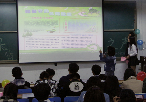 为增强同学们的环境保护意识,10月22日,校区、学院团委在西校区1C103教室举办了环保之声活动。本次活动由校区、学院团委主办,校区、学院大学生志愿者联合会绿洲节能服务部承办。