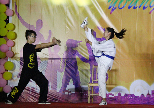 本次晚会以“Young溢青春 Hold住梦想”为主题,晚会节目均有各学生社团选送,形式多样,内容丰富,各个节目彰显学生社团特色。动感的摇滚音乐率先拉开晚会的序幕,调动了全场热烈的气氛。《侠客行》中舞狮的表演人员动作灵活、身手敏捷、技艺高超把狮子演绎的活灵活现、形象逼真。“点睛”、“采青”、“吐联”等表演和“狮子单飞转”、“上单腿”、“上双腿”等高难度动作引来同学的欢呼喝彩。活力四射的广场舞,台上台下手手相携,共同起舞将晚会推向高潮。诙谐幽默的相声、声情并茂的诗朗诵、令人回味的歌曲串烧等节目精彩纷呈,给同学们带来了一场精妙绝伦的视听盛宴。最后晚会在舞蹈《Me gustas tu》中缓缓落下帷幕。