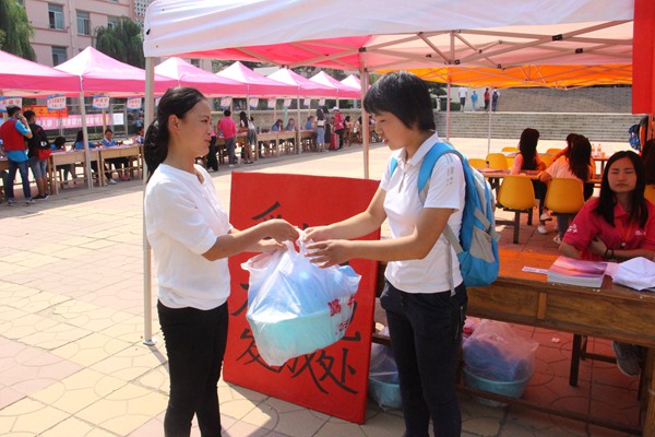 为帮助家庭经济困难学生顺利开启大学生活,迎新期间,学生处针对2016级家庭经济特别困难学生开展了“助学新生·爱心有礼”发放“爱心大礼包”活动。
