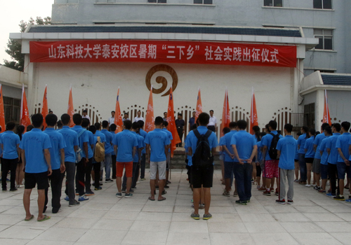 月22日,校区、学院2016年大学生暑期“三下乡”社会实践出征仪式在东校园文化广场举行。校区、学院党委副书记苏同营、学生处处长黄德杰、团委书记王靖磊以及各系党总支副书记、团总支书记、指导教师和志愿者代表240余人参加了出征仪式。