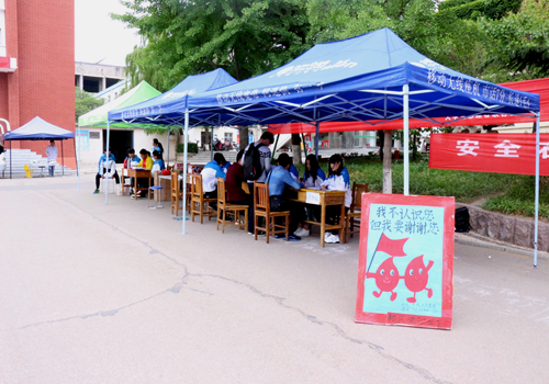 5月14日,由校区、学院团委主办,校区、学院学生会承办的“真情流淌,血脉相通”无偿献血活动在校医院门口举行。