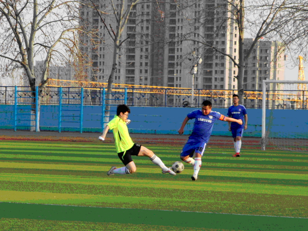 后续的比赛更是精彩纷呈。队员们势如破竹,用巧妙的短传配合多次打穿敌人防线,细腻的脚法,将球多次带入对方禁区,并成功得分。球员们不甘示弱,在球场上各尽其职。他们在球场上挥洒着汗水,个个精神振奋积极配合,抓住机会,主动进攻。抢球!带球!投球!球员们任由汗水肆意地挥洒在绿茵场上。