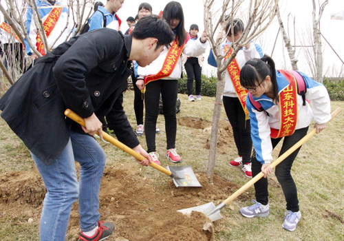 为鼓励大学生亲身参与绿色植物行动,唤醒大学生的环保意识。3月12日,由校区、学院团委主办,校区、学院大学生志愿者联合会承办的“万顷樱花”公益植树活动于长城路五矿周边草坪正式拉开序幕。我校青年志愿者们与泰安市公益志愿者协会共同参与泰安大众网“同值绿•共抗霾,共建共享魅力泰安”公益植树活动。
