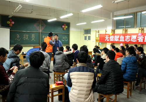 12月22日,由泰安市中心血站赞助,校区、学院团委与泰安市红十字会服务站联合主办,校区、学院学生会承办的”急救员征集令“活动在东校区成功举办。
