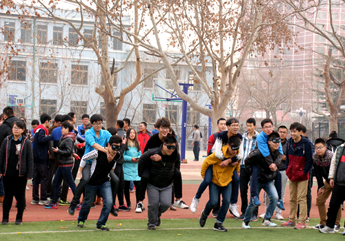 在这个天寒地冻的季节,大多数人空闲时间都呆在室内,不愿出门走动,为了让同学们到室外活动身体,下午2点,全体校区、学院学生会成员在操场集合,并做好准备活动。大约两点半,活动正式开始,活动以比赛的形式进行,有踩气球、搭桥过河、瞎子背瘸子等五项比赛。操场上不断奔跑的身影,为这个寒冷的冬天增加了无限的活力,寒风也阻挡不了大家热爱运动的心。