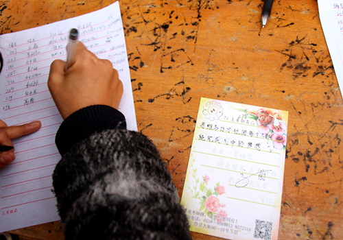本次活动的主题为“写给未来的一封信”,意为给一年后的自己写一封信。活动开始,由大学生新闻中心全体成员分发明信片并鼓励来往同学参加此次活动,每位同学都可以写下自己的愿望、想法、祝福等,然后留下自己的联系方式,方便一年后将明信片发至本人。一年的时光转瞬即逝,当一年后再看到这张明信片时,同学们可以反省一下自己是否达到了一年前定下的目标,或者看看这一年与自己的期望又有什么变化,意义深远。