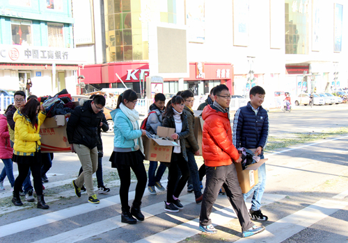 下午两点,在校区、学院学生会工作人员的努力下,“旧衣捐赠”所得的545件衣物成功搬运到邮局,这些衣物将分别邮至甘肃省白银市会宁县新源乡杨坪小学、甘肃省白银市会宁县万岔小学、甘肃省白银市会宁县寨科小学、贵州省铜仁市德江县八一小学和贵州省铜仁市德江县枫香溪镇长征小学,为那里的同学们送去温暖。