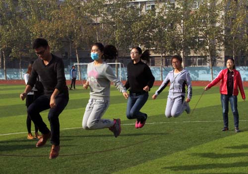 本次趣味运动会将竞技与娱乐相结合,以协会为单位,着重考察同学们的合作能力。跳大绳、三人四足、双人踢键、螃蟹赛跑、传话抱球跑五个比赛项目不仅将团队精神充分体现,同时兼顾了趣味性和互动性,使得整个竞赛气氛激烈不失轻松愉快。比赛现场,参赛队员积极准备,在各个项目中拼尽全力,勇争第一。经过激烈的角逐,各参赛团队皆获得满意的成绩。其中乐秀相声协会获得第一名的好成绩,ERP协会、泰山文化协会紧随其后。(文:齐明佳 图:郁万鹏 樊鲁豪)