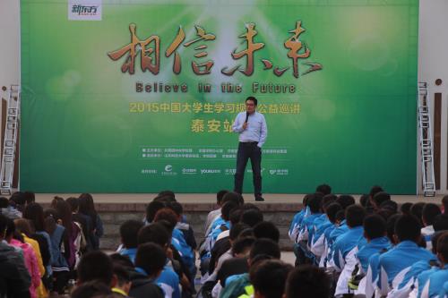 10月14日,新东方“相信未来—2015中国大学生学习规划公益巡讲”在我校举行。本次活动由共青团中央、全国学联办公室、共青团泰安市委以及新东方教育科技集团联合主办,由共青团3044永利集团官网泰安校区委员会、济南新东方泰安校区联合承办。2015级全体新生聆听了讲座。