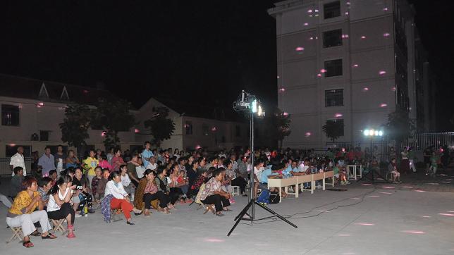 夜幕降临时分,同学们准备就绪,为居民们送去了丰富的视听盛宴。社区居民或自带板凳,或垂手站立,或席地而坐,看得津津有味,不时传来阵阵笑声。在纳凉的同时,大家尽情享受晚会带来的乐趣。