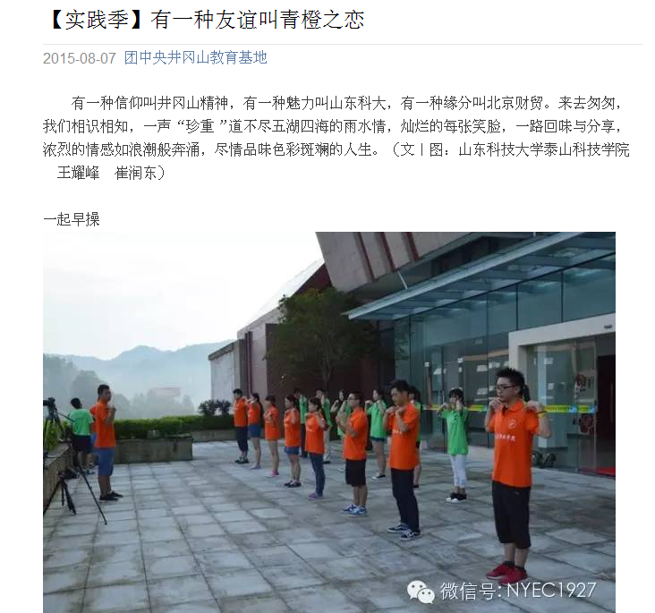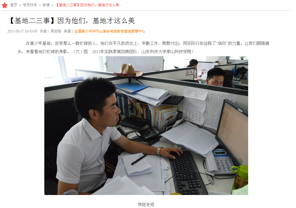 8月7日,2015年“井冈情·中国梦”全国大学生暑期实践季专项行动结题汇报会暨结业仪式在全国青少年井冈山革命传统教育基地落下帷幕。学院“青未了”实践调研团队成果丰硕,研究课题《井冈山革命传统教育现场案例教学APP》获得基地领导及其他院校学员一致好评。调研期间,队员们先后走访参观革命景点12个,拍摄图片5000余张、视频315个,采集文字资料223篇,完成了APP程序开发及调试,在全国青少年井冈山革命传统教育基地网站、微信、微博发表新闻稿件7篇,3篇新闻被《大众网》、《中华泰山网》采用,调研成果丰富,为后期课题的深入研发提供了大量素材。(文:王耀峰)