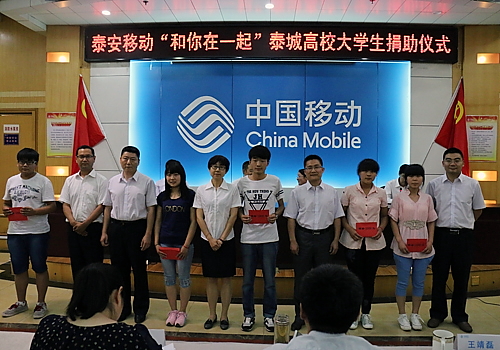 文法系秘书学专业的孙欣和资源与土木工程系测绘专业的李紫微在校成绩优异,但是家庭经济条件并不乐观,大学的学费与日常费用为她们带来不小的负担。分别接受泰安移动捐款后,两人纷纷表示,这2000元不仅解决了她们的燃眉之急,也让她们打消了外出打工的念头,从而有更多的时间学习,她们一定会抓住学习的机会,以后凭自己的能力回报社会。