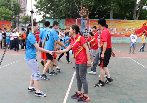 比赛结束了,双方队员互相握手,此次比赛也让同学们相互间结下了深厚的友谊。