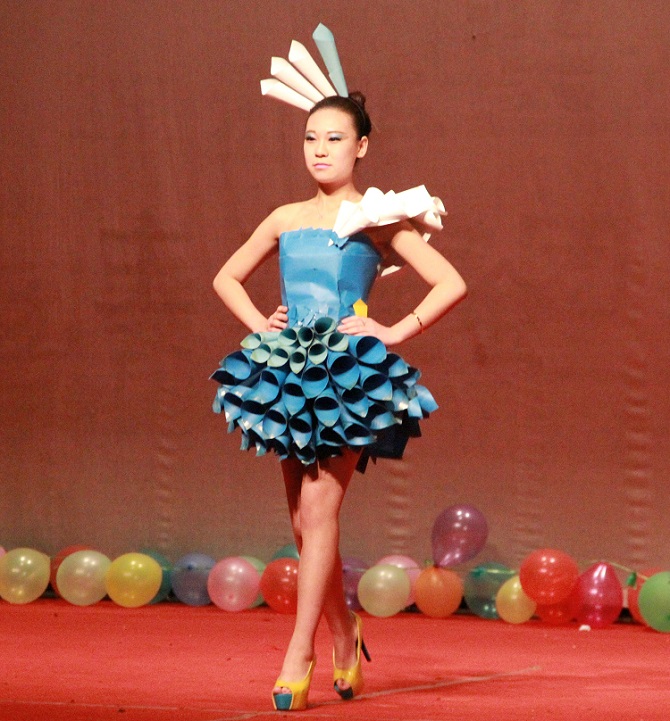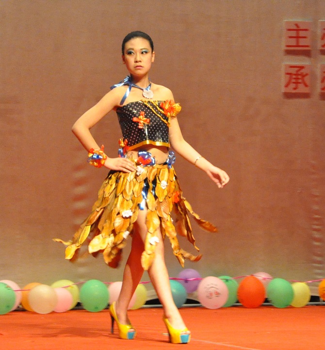 如今低碳生活逐渐深入人心,废弃物回收再利用成为保护环境的有效方法。为号召学生建立资源节约型、环境友好型社会,加强当代大学生环保意识,5月9日,由校区、学院团委主办,校区、学院学生会、绿洲节能协会承办的环保服装设计大赛在西校园礼堂举行。