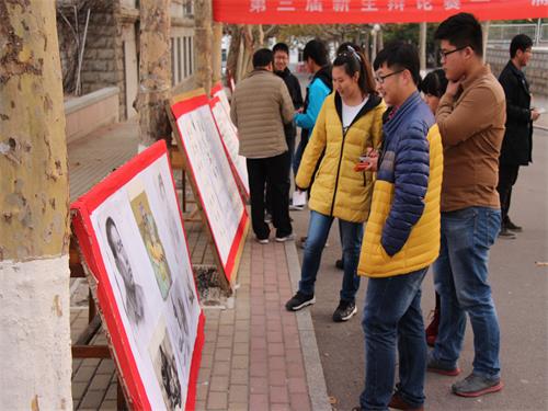 11月20日,由校区(学院)团委主办,校区(学院)学生会承办的书画展,在小篮球场旁主干道举行。