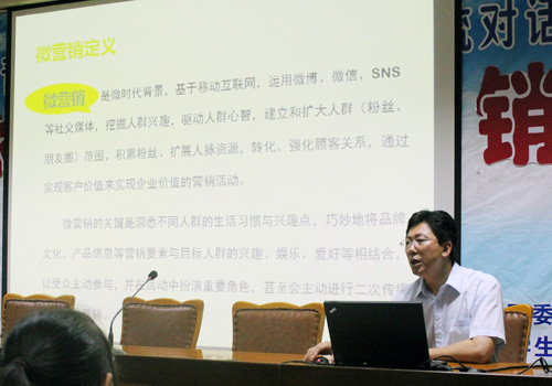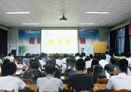 月24日,由校区(学院)团委主办、校区(学院)学生会主办“青未了•心之约”与大学生交流对话活动在西校园举行,本期的主题是:微时代之微营销,活动邀请嘉宾为中国海洋大学管理学院教授、硕士生导师曹明。