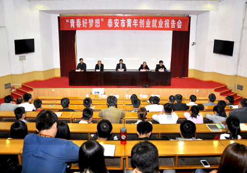 4月8日,“青春好梦想”泰安市青年创业就业报告会在我校四号楼报告厅成功举办,校纪委副书记兼校区(学院)党委常务副书记刘传玺、共青团泰安市委副书记苏伟丽、泰安市青年创业就业典型张成、刘潇参加,报告会由校区(学院)团委书记戴东宝主持。