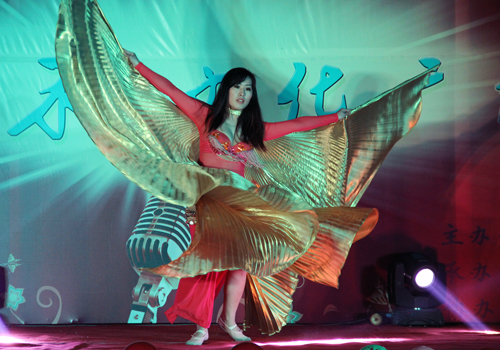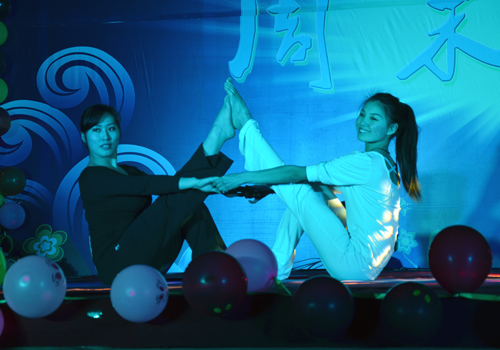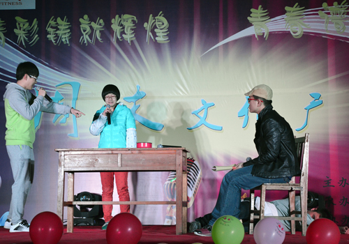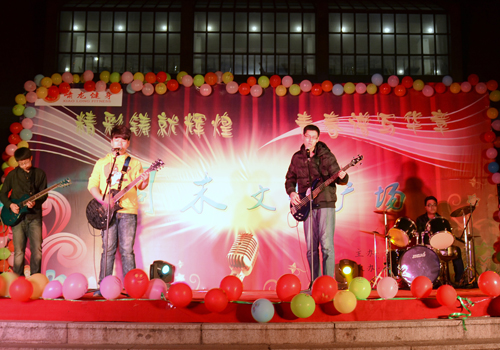 今年的周末文化广场启动仪式比起往届,增添了许多亮点:此次启动仪式创新引入先进的航拍设备,同时开设人人墙和微博墙进行现场互动。节目内容也是形式多样、丰富多彩。仪式在小a乐队激情动感的歌曲串烧中拉开帷幕。小品《黑马公主和白雪王子》创新采用男生反串婀娜多姿的黑马公主的方式,瞬间嗨翻全场。接着,无论是曲调清新的流行歌曲《泡沫》、深情忧郁的歌曲《内疚》,还是诙谐幽默的小品《悲与喜》等节目无一不让观众们拍手叫绝。其间,精妙绝伦的肚皮舞《金翅莱》以炫动的舞姿、别致的服装得到同学们的一致好评;男生俯卧撑、女生仰卧起坐的趣味游戏更是将晚会推向高潮。最后,晚会在唯美动听的歌曲《怎样》中完美落幕。