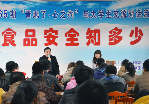 食品安全问题关系到全校师生的健康,12月5日,校区(学院)团委特邀泰安市食品药品监督管理局食品化妆品监督所所长丛庆和同学们进行交流,主题为:食品安全知多少。