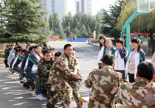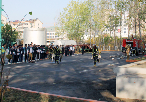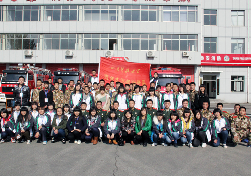 同学们首先参观了消防官兵们的宿舍,干净整洁,“豆腐块”让人顿感钦佩。接着在官兵们的引领和专业的讲解下,同学们参观了消防水车、泡沫枪、防爆设备等专业救援工具,接下来的模拟演练也是精彩绝伦,只见士兵们手携水袋快速前进,精准对准着火点,以达到快速灭火目的。为进一步增加教练,志愿者们还与消防官兵共同为退伍战士表演了精彩的节目:悠扬的二胡独奏、嘹亮的军歌演唱、帅气十足的双节棍表演、激情高亢的献唱,消防队员还与同学们密切合作了《葫芦娃》,平日奋斗在一线的严谨将士此刻化身搞笑角色,生动的表演令现场充满了欢愉的味道。“我们和消防队员们一起参与了拔河比赛、参观了他们的日常训练生活、也观看了他们迅速着装消防服装的场景,令我们深有感触。”