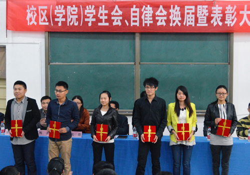 大会表彰了上届学生会等校级学生组织的优秀学生干部、优秀干事,同时公布了2013-2014学年校区(学院)学生组织干部名单。随后,为2012-2013学年优秀学生干部和优秀干事代表颁发证书,为新一届学生会主席团、自律会主任团成员颁发聘书。