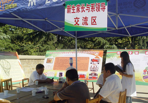 为了进一步了解学生家长心理,拉近“小家庭”和“大家庭”的距离,文法系特别开设了新生家长与系领导交流区。文法系党总支书记马福泉、主任张学银、党总支副书记裴国栋、团总支书记郭涛林都参与了本次的交流,与新生家长们热情沟通,解决他们心中的问题,从学校软硬件设施、纪律要求,聊到学校专业设置、办学优势,从对孩子给予的希望、专业选择的缘由,聊到办学特色、社会形势的新要求。文法系党总支书记马福泉表示道:“来咨询的家长很多,大多数的家长都很关心学校的教学质量、人文环境、学习氛围等问题。我们也以历届本、专科学生的例子给予了详细的解答。”“学校还设有新生家长领导交流区,我感到很意外也很欣喜,儿行千里母担忧,能听到学校明确的表示,作为家长的也就放心了。”一名母亲欣慰的说道。此外,学校领导还表示,“学校各系都会始终秉承质量教学的理念,逐步改进教学方法,积极探索办学特色,坚持教育教学一起抓,重视理论实践结合教学,提高学生综合素质。”