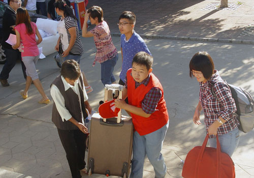 帮助新生搬运行李