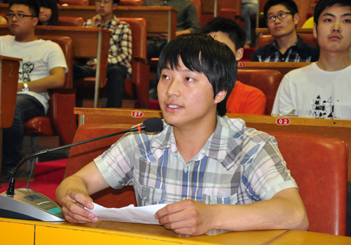 报告会上,青岛校区王晨晓、秦谭、张刚、泰安校区刘永庆、济南校区顾桂金等五位同学作为“身边的感动”校园感动人物代表作了报告。泰安校区工管10-1班班长、经管系学生会主席刘永庆分别从学习、生活、工作和社会实践方面讲述了自己的感人事迹。他说,奋斗过不论成败,我自泰然处之;拼搏过不论进退,我自昂首向前。刘永庆感谢老师和同学一直以来对学习和工作的支持,并表示一定不会辜负老师的期望,以更高的标准严格要求自己,让自己更加优秀。