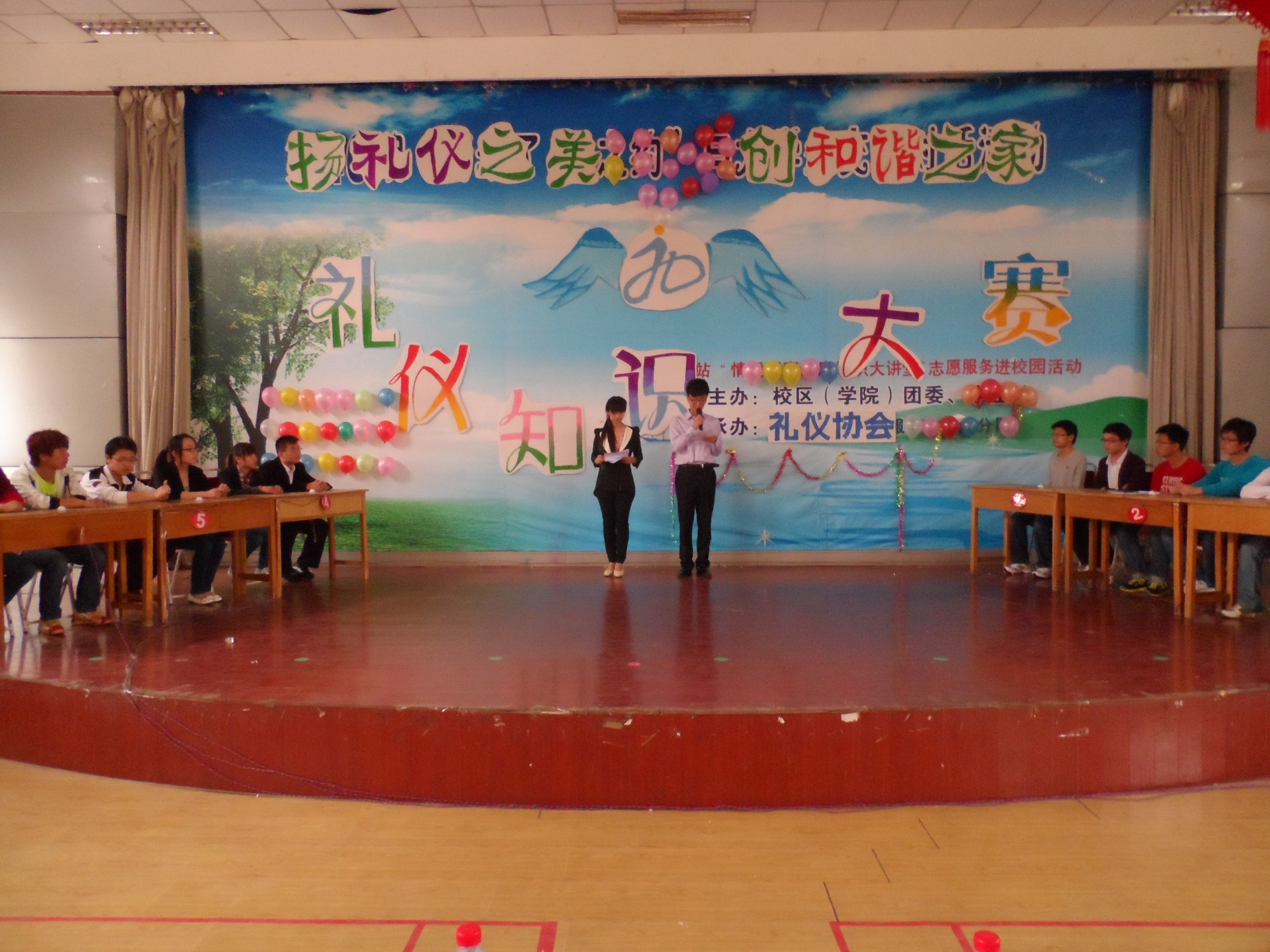 4月27日下午,由校区(学院)团委主办、礼仪协会承办的“扬礼仪之美·创和谐之家”礼仪知识大赛在大学生素质拓展中心成功落下帷幕。经过初赛的激烈角逐,共有六组选手挺进决赛,争夺冠军之位。