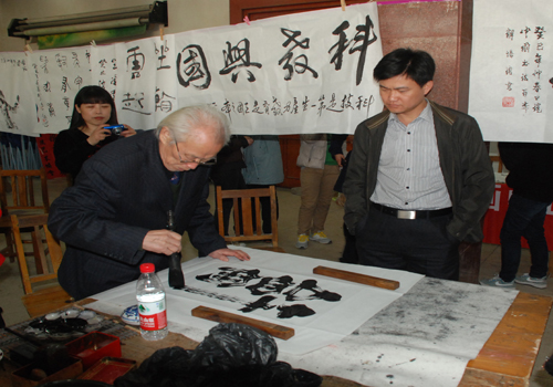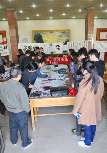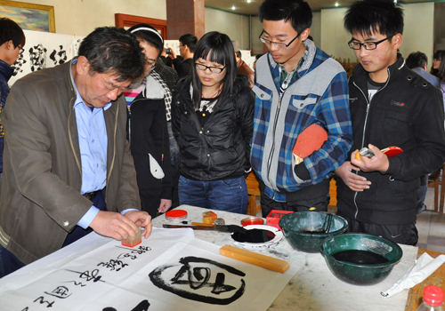 活动现场,各位书法家、画家也挥毫泼墨,大显身手。他们便完善作品,便和同学们交流,向书画爱好者讲解书画注意事项及如何欣赏作品。