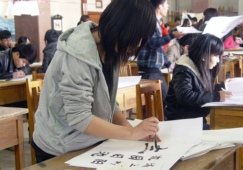 品位书法魅力,秀出绘画特长,放飞青春梦想,开启书墨奇异之旅。此次书画比赛共有硬笔书法、软笔书法及绘画三项,面向全体同学展示书画风采。赛前,选手们积极就位,跃跃欲试,进行赛前热身。在现场观众的热切期待中,选手们挥舞画笔,泼汁撒墨,绘画作品色彩绚丽,风格独树一帜。气韵生动的素描,水色交融的水彩画,写意的山水画,绘画者们以色彩斑斓的画卷抒发内心的情感。书法组的同学更是激情昂扬,有折无转、方圆兼用的隶书;方正质朴,端庄豪放的楷书;龙飞凤舞、飘逸潇洒的草书;放纵流动、端正平稳的行书,无不神形兼备,笔尖遒劲有力,彰显“文化与激情碰撞,青春载梦想起航”的活动主题。比赛时间临近结束,才华横溢地参赛者们凭借饱满的精神将一幅幅优秀作品呈现给大家。评委老师从专业角度对作品点评、甄选后,来自金融12-3的陈其慧获得软笔书法一等奖、国贸11-1的魏士超获得硬笔书法一等奖,绘画一等奖则由会计10-5班的魏金获得。