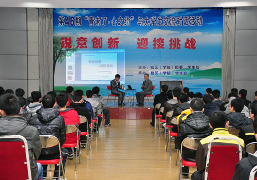 12月2日上午,由校区(学院)团委主办、校区(学院)学生会承办的第46期“青未了•心之约”大学生交流对话活动在大学生素质拓展中心举办。本期以“锐意创新 迎接挑战”为主题,邀请到中国创造学会常务理事、山东大学发明创造教研室主任、硕士研究生导师王思悦教授与大学生进行了面对面交流。
