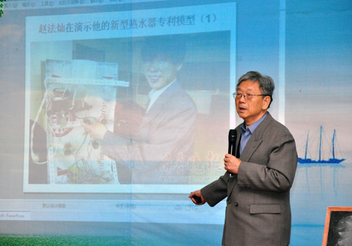 活动中,王思悦针对大学生创新能力的培养话题,从国家、民族、个人三个方面向同学们阐述其意义和作用,并总结出“发明彰显人性中的大爱,创造需要人质中的大悟”的结论。接着,他又从大学生进行发明创造的可行性出发,从创造教育的实物发明、创造教育的专利两个方面做了深入浅出的分析,并指出我国大学生发明专利多但专利转让少的现状,提出“真正的人才是具有创造能力的人”的观点。随后,王教授就怎样才能具备创造能力,分别从转变观念、提升感悟等方面为同学们做了全面的讲解,指出观念更动是发明创造的基础,着重强调了感悟能力的重要性,并将自己的感悟荐言“悟性的本质是头脑里的一种‘维’的诱长,他如同拔地而起的大树一样,虽然来自泥土,但在大树的截面里并没有泥土”与同学们一起分享。最后王思悦还就“挑战杯”竞赛需要注意的事项进行了相信的讲解。在交流互动环节中,同学们积极发言,王教授为同学们一一作了详细的回答,并鼓励同学们要学会转变观念,多角度思考问题,加强自己感悟能力的培养。