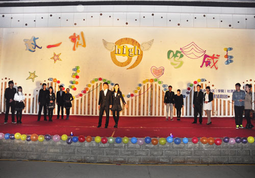 五彩的气球在绚丽的灯光下熠熠闪光。晚会在礼仪协会的走秀中拉开帷幕,优雅的走秀配以动感的音乐节奏,瞬间点燃了现场热闹气氛。随后,由双语话剧团带来的话剧《唐僧恋爱风波》,更是令现场观众捧腹,幽默的语言,夸张的肢体动作,为观众奉献了一场唐僧另类的恋爱经历。浓浓温馨中,晚会开始上演由各社团人员精心策划排练的一系列精彩节目。歌舞、话剧、情景剧等轮番上阵,现场精彩不断,高潮迭起。其中,哑剧《鞋油的力量》,演员丰富的脸部表情和幽默夸张的语言配合的恰到好处,笑翻全场全场;反串话剧《甄妃传》更是让观众忍俊不禁,博得阵阵掌声。随后,由舞岳殿编排的街舞串烧high翻全场。街舞达人们带来的浪漫的华尔兹、刺激的breaking、酷毙的爵士舞,使现场观众应接不暇,连连拍手叫好。还有相继推出的吉他弹唱《那些年》等歌曲进一步突显了晚会“这一刻high鸣威”的主题。最后,晚会在富丽华美的《贵妃醉酒》的歌声中徐徐落下帷幕。