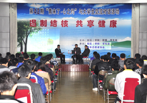11月9日下午,由校区(学院)团委主办、校区(学院)学生会、青年志愿者协会承办的第42期“青未了·心之约”大学生交流对话活动在大学生素质拓展中心举办。本期以“遏制结核 共享健康”为主题,邀请到泰山区疾病控制中心结核预防科主任李继海和泰安市结核防治中心大夫孟凡亮与百余名学生进行面对面交流。